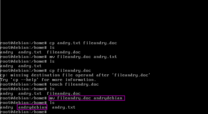 9. Lalu peritah selanjutnya adalah”mv” fungsinya memindahkan suatu objek ke folder. Dengan format ” mv namafile namafolder”.