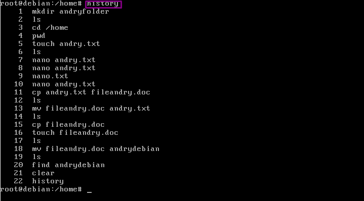 11. “history” fungsinya adalah melihat riwayat perintah kita.