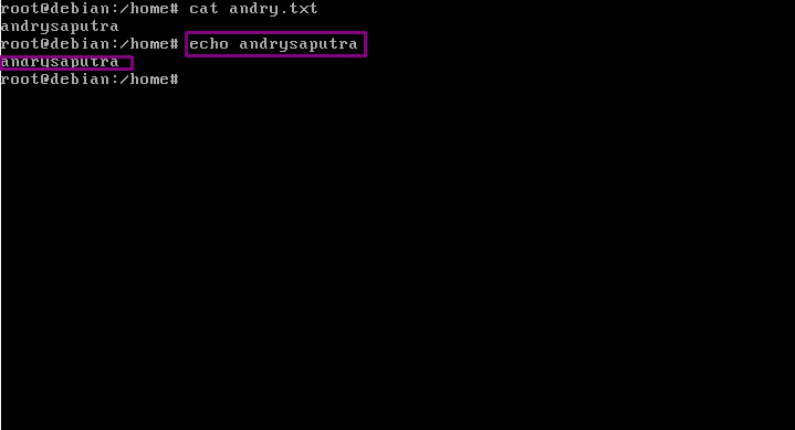 13. “echo” fungsinya adalah menampilkan baris teks. ketikkan dengan format “echo namafile”.