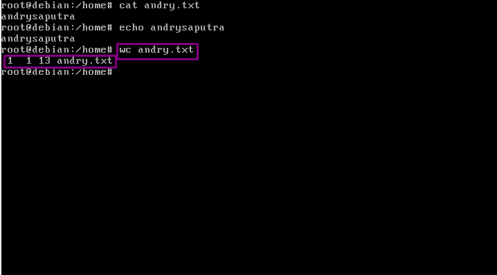 14. “wc” fungsinya adalah menampilkan baris,kata,byte sebuah file. Ketikkan dengan format “wc namafile”.
