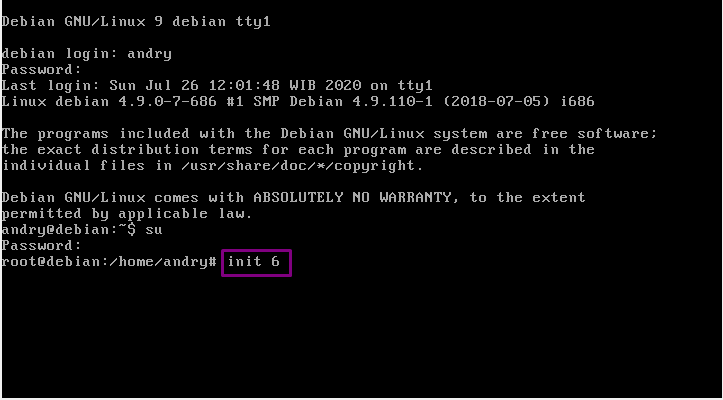 25. “init 6” fungsinya adalah Untuk memulai mesin virtual