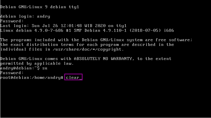 27.”clear” fungsinya adalah Membersihkan riwayat, tetapi jika di scroll ke atas tidak menghapus perintah-perintah.