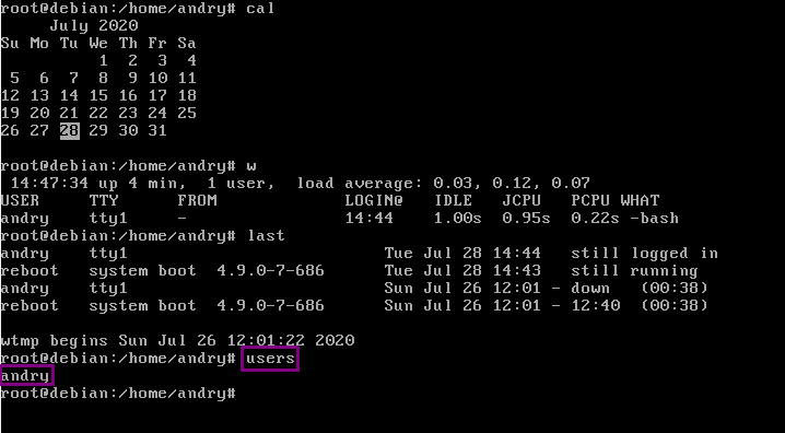 33. “users” fungsinya adalah Menampilkan Daftar pengguna yang sedang login.