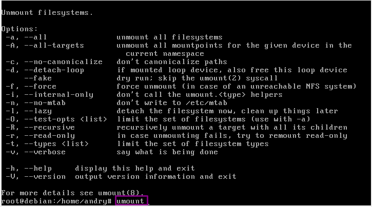42.”umount” fungsinya adalah melakukan unmount/pelepasan.