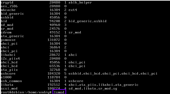 48. “lsmod” fungsinya sebagai ( root ) melihat modul-modul kernel yang telah dimuat / semacam partisi ext4/ext3.