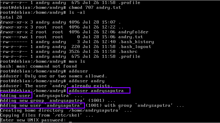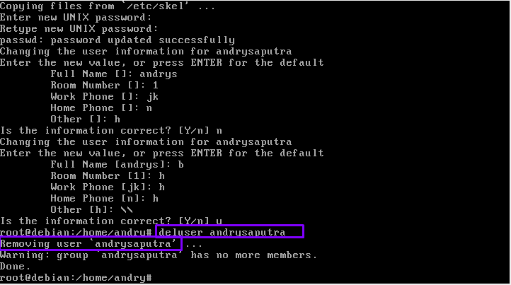 49. “adduser” fungsinya adalah, menambahkan user baru. Ketikkan dengan format “adduser namapenggunabaru”