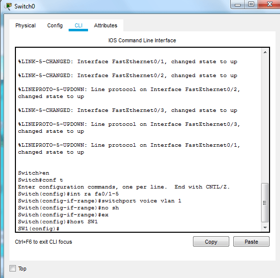 7. Dan masuk ke Switch ( kota A) pilih menu CLI lakukan perintah seperti dibawah ini !!