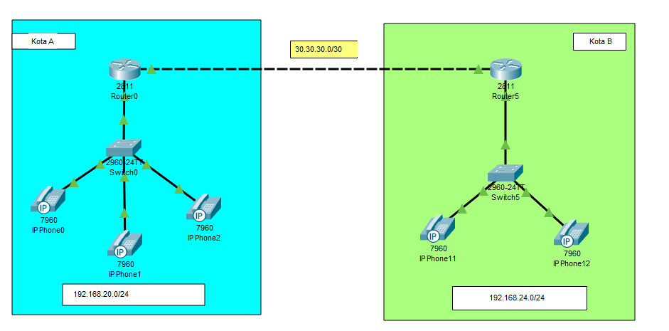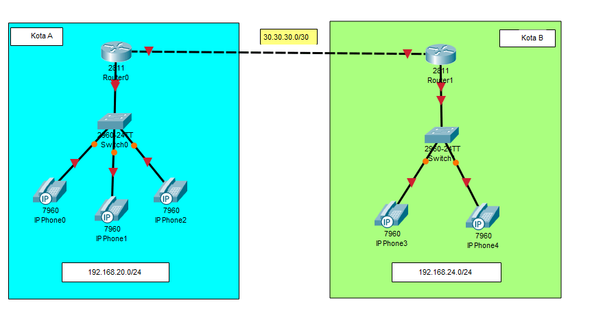 11. yeayy, Konfigurasi di kota A telah selesai mari kita uji coba. Dengan melakukan panggilan Telepon dari Ip phone 0 ke Ip Phone 1 ( Kota A )