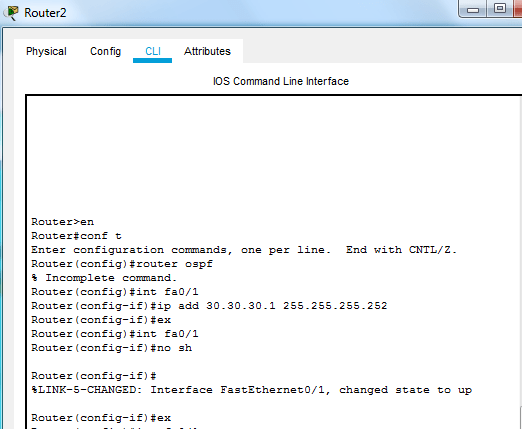 15. Sebelum melakukan konfigurasi Ospf kita akan Menghungkan Router 1 dengan Router 2 dengan cara : masuk ke router 2 lakukan perintah seperti di bawah gambar lalu cek router 1 apakah ada pesan ( Full Done ! )