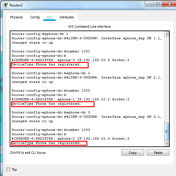 18. setelah melakukan konfigurasi ospf, Kemudian lakukan perintah di Router kota A ingat number dari setiap IP Phone kota B, Karena kita aakn mendaftarakannya.