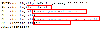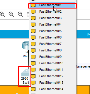 6. setelah itu, kita akan masuk ke interface dari port yang mengarah ke Router yaitu fa0/1. Masih konfigurasi dalam switch ya !!