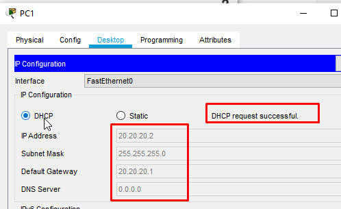 12. oke, sampai disini anda telah berhasil melakukan konfigurasi DHCP Server IP Request ( maksudnya, setiap perangkat PC memiliki IP secara otomatis tanpa harus capek-capek mengetik dan mengonfigurasi secara manual karena kita sudah melakukan perintah DHCP Pool, IP akan dibagikan secara Otomatis ! Cukup praktis bukan ?. ) Oh iya, coba lihat indikator lampu pada media kerja anda ! semuanya sedang berjalan / warna hijau. ini berarti konfigurasi yang dilakukan berhasil. jangan lupa setting DHCP IP pada setiap PC dengan cara seperti gambar dibawah ini :