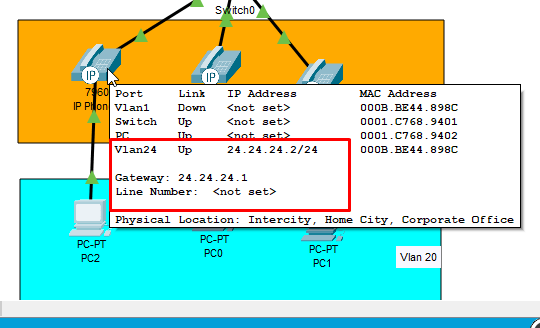 13. Kemudian, lihat juga pada IP Phone secara otomatis sudah mendapatkan IP. caranya cukup arahkan kursor pada perangkat IP Phone lalu diamkan beberapa detik setelah itu, akan muncul pesan dan info mengenai konfigurasi IP Phone !