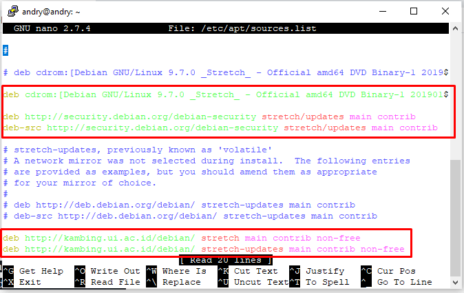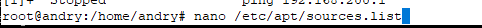 3. Masukkan perintah nano sources.list untuk mengedit isi file.