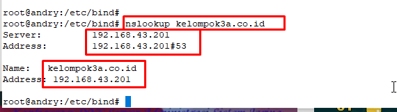 - Pengujian nslookup, dengan perintah nslookup andry04.co.id