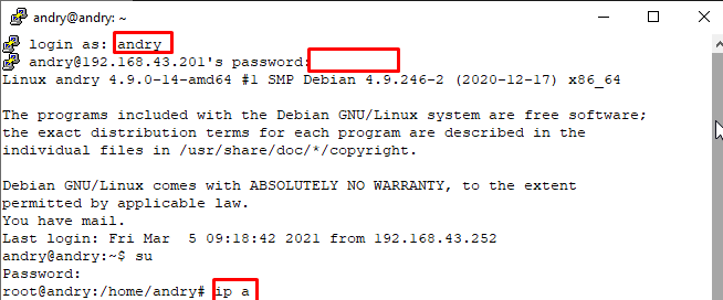 1. Login ke debian dengan memasukkan nama user dan password. Disini saya remote menggunakan PuTTY agar tampilannya dapat terlihat lebih jelas.