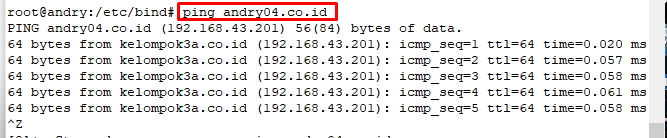- Pengujian ping, dengan perintah ping andry04.co.id