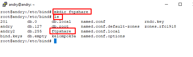 6. Buat Folder dengan nama ftpshare kemudian periksa dengan perintah ls.