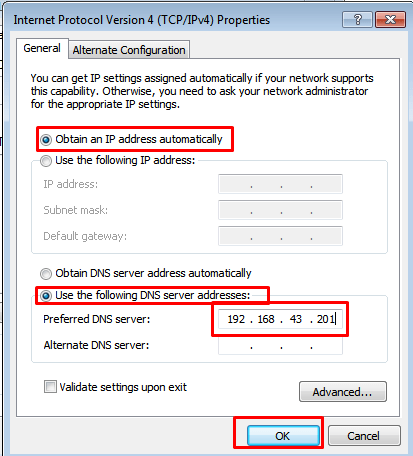 - Untuk melakukan uji coba kita arahkan IPv4 Dns ke IP DNS yang kita konfigurasi sebelumnya.