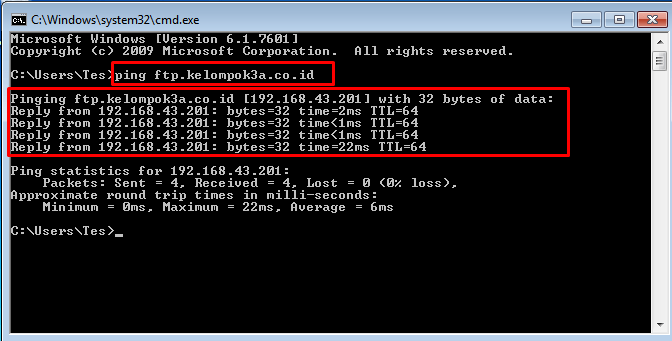 4. lakukan pengujian ping ftp seperti gambar dibawah ini !