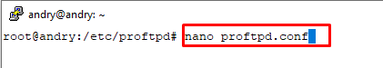 3. edit file proftpd.conf dengan perintah nano proftpd.conf