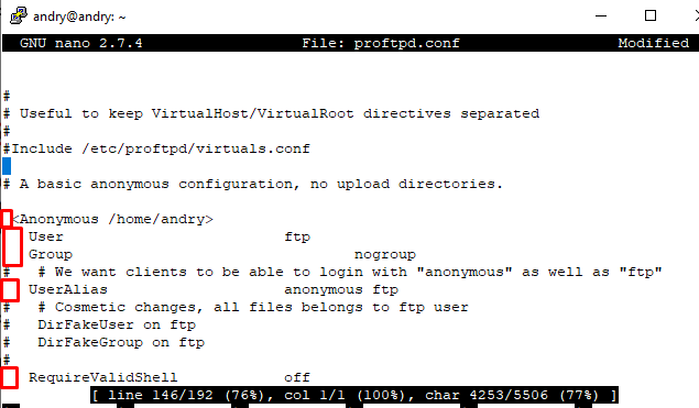 9. Edit file proftpd.conf dengan perintah nano proftpd.conf