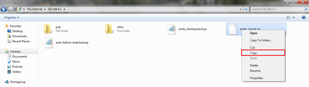 2. Buka FTP lagi dengan cara yang sama seperti sebelumnya, kemudian copy file berekstensi .rsc