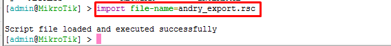 6. kemudian, kita coba impor/minta suatu file simpanan dengan nama file yang telah kita buat & berekstensi .rsc