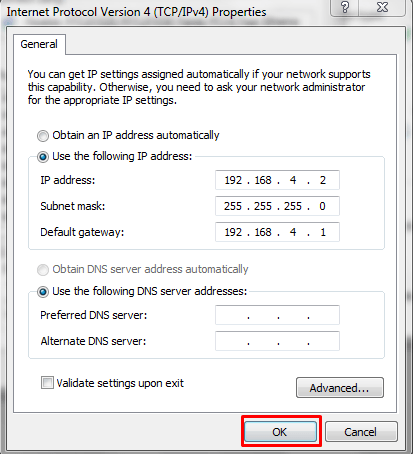 7. IP address sebelumnya yaitu, 12.12.4.1 maka ip address yang dapat dipakai oleh komputer host/client antara 12.12.12.4.2 hingga 12.12.4.254 ( buka Open network Connection > Local area connections > Properties > TCP IPv4 > Properties.