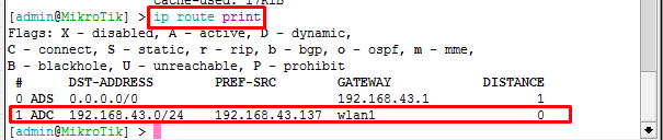 13. lihat ip address yang telah terdaftar dengan perintah “ip address print“