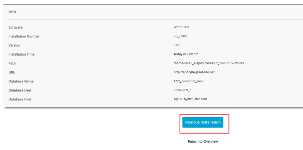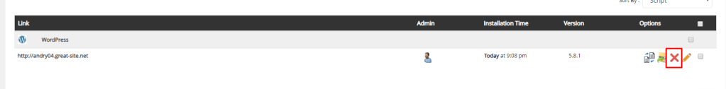 13. Buang layanan wordpress pada control panel sepeerti berikut.