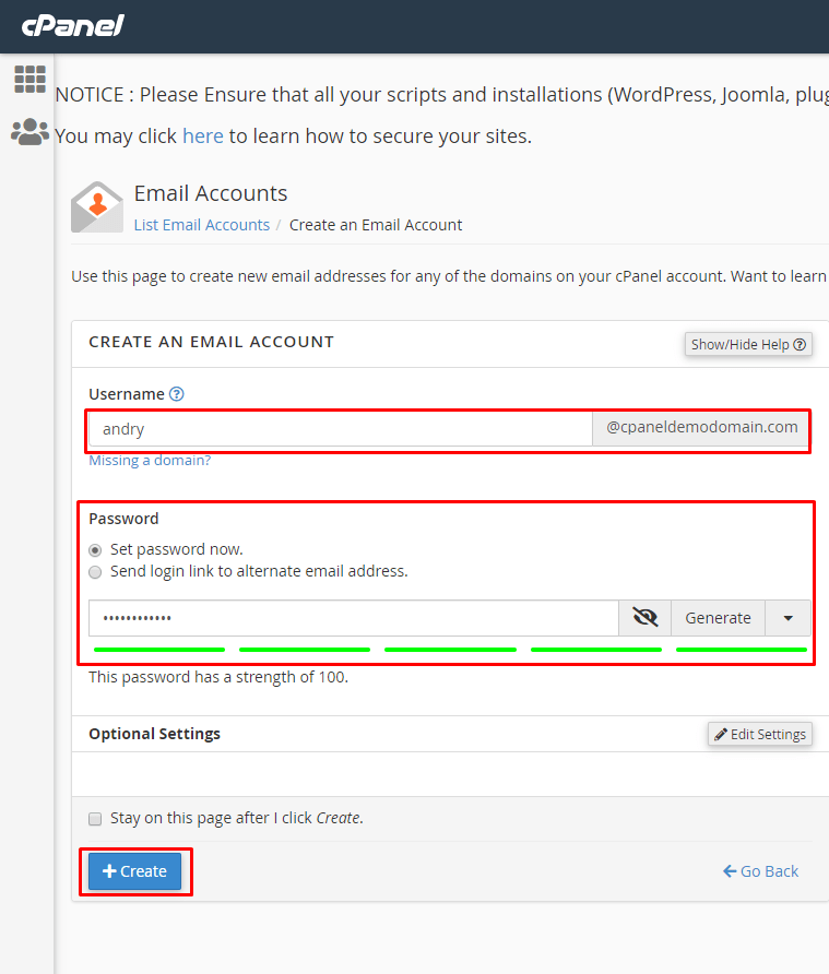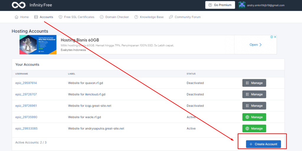 3. Silahkan kalian dapat membuat akun cpanel dengan klik create account